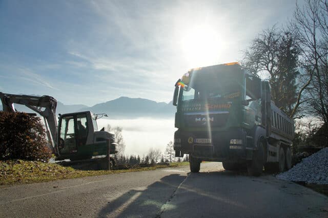 Ob Aushub, Schotter oder Spezialladung – wir kümmern uns rasch und unkompliziert um Ihre Transportanfrage. Persönlich, flexibel und exakt abgestimmt auf Ihre Baustelle.
