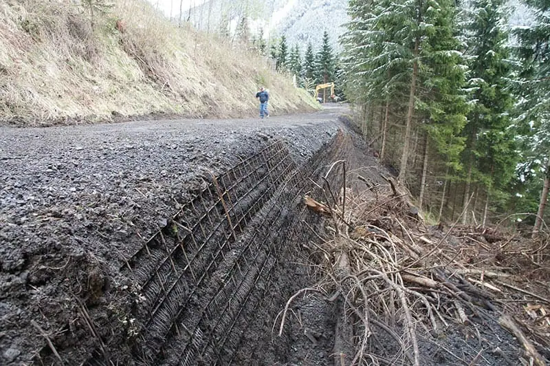 Langlebige Instandsetzung einer Forststraße mit bewehrter Erde